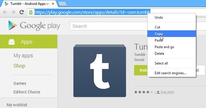 برای دانلود از گوگل پلی باید لینک دانلود آن را مانند تصویر زیر کپی نمایید: