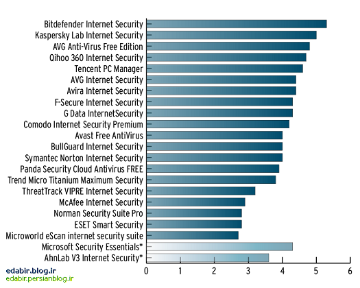 به شکل کلی وضعیت نرم افزارهای امنیتی و رده بندی آنها طی سال 2013 از دید این لابراتوار و بر اساس آزمونها صورت گرفته از سو آن به شرح زیر است: