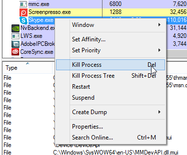 به سرعت به آن پایان دهید. برای این کار روی پروسه مذکور کلیک راست کرده و